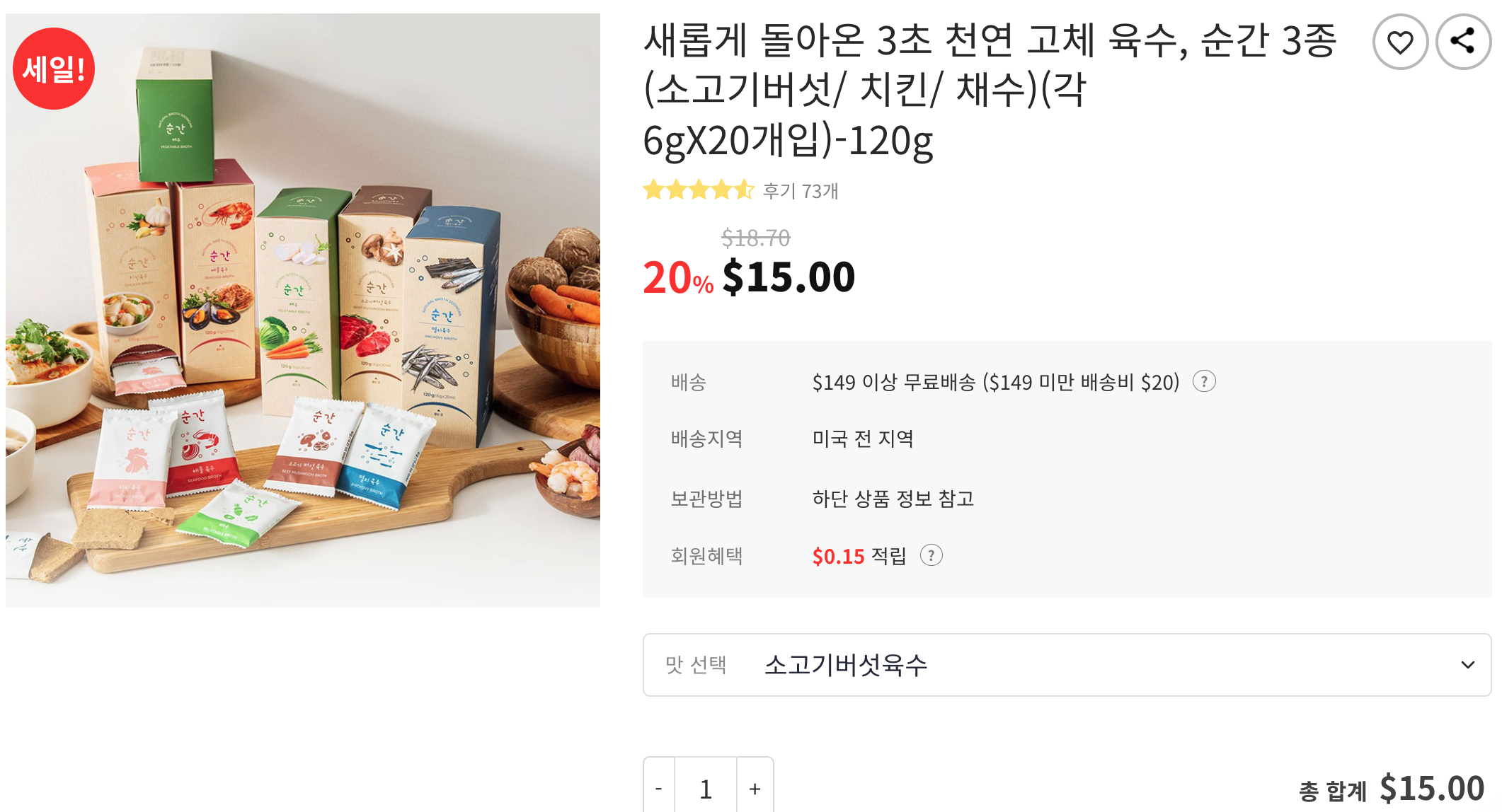배송 - $149+ 무료배송, 그 이하 배송비 $20